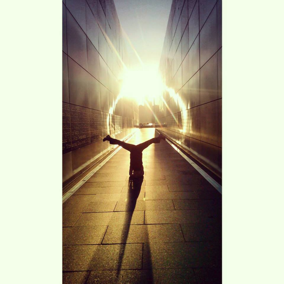 #fyhandstand365 day 332 – Early morning run, 6:30am Lower Manhattan sunrise, 9/11 memorial, running off my jet lag at Empty Skies Memorial, Liberty State Park.