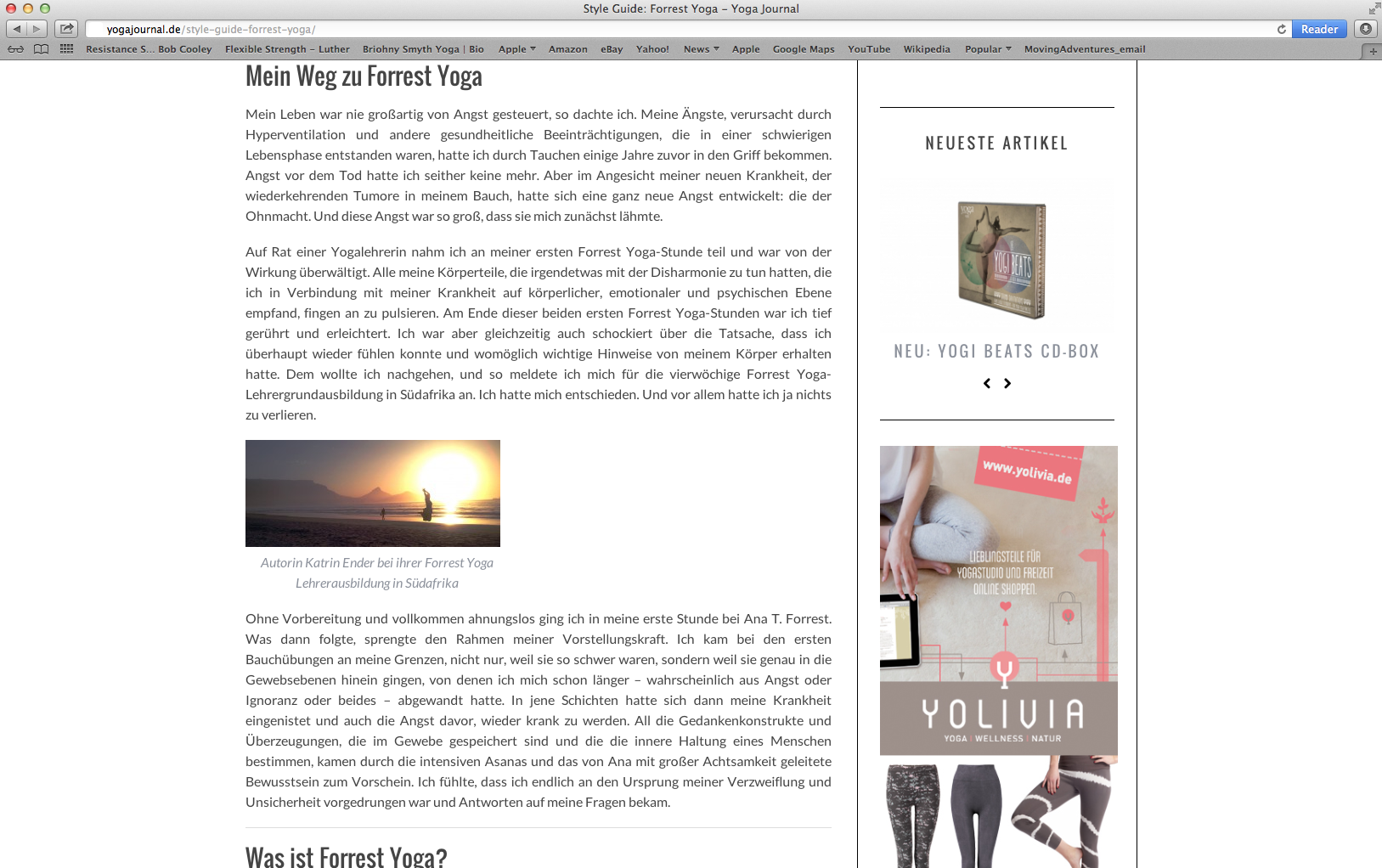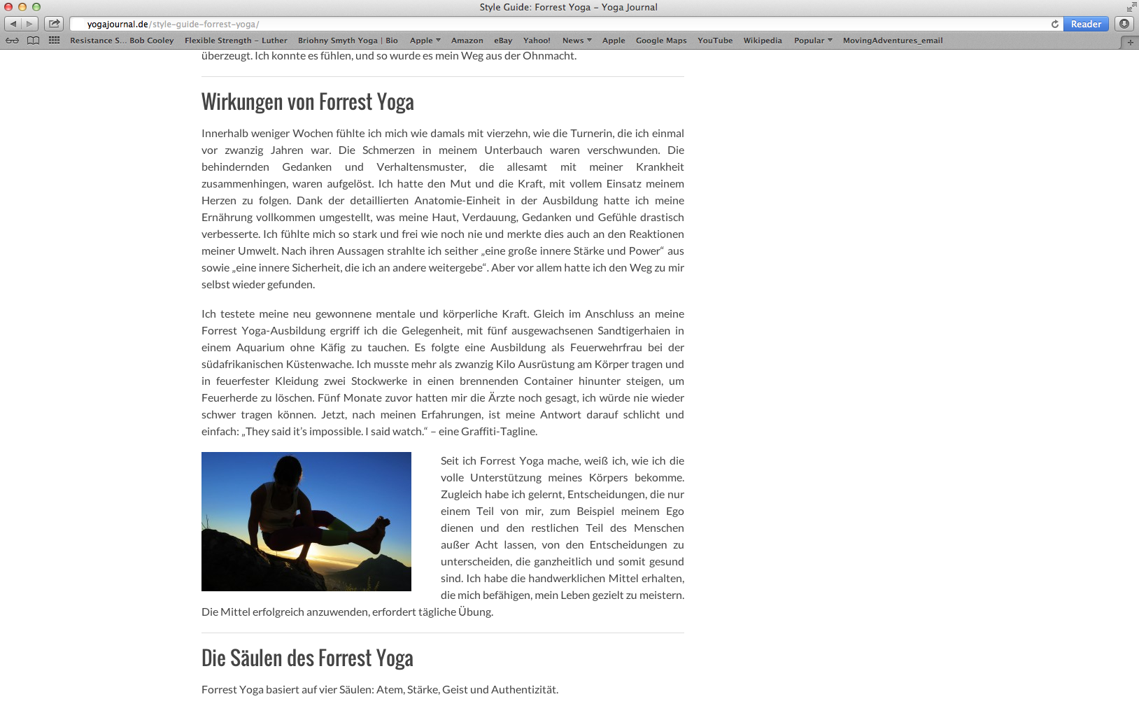 In 2014, I wrote the “Forrest Yoga Style Guide” for Yoga Journal Germany.